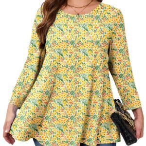 Women’s Tops 3/4 Sleeve Plus Size Tunic Tops to Wear with Leggings Swing Flare T-Shirt Loose Fit Ladies Blouses