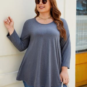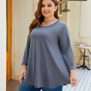 Feature: Crewneck, 3/4 Sleeve, flowy bottom hem, loose fitting tunic tops, casual basic T-shirts