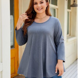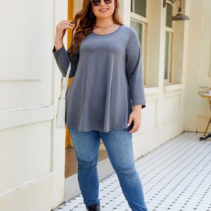 Women’s Tops 3/4 Sleeve Plus Size Tunic Tops to Wear with Leggings Swing Flare T-Shirt Loose Fit Ladies Blouses