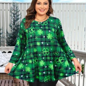 Splensive Womens Tunic Tops 3/4 Sleeve Plus Size to Wear with Leggings Four-leaf
