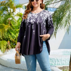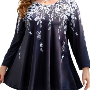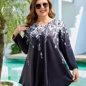 Women’s Tops 3/4 Sleeve Plus Size Tunic Tops to Wear with Leggings Swing Flare T-Shirt Loose Fit Ladies Blouses