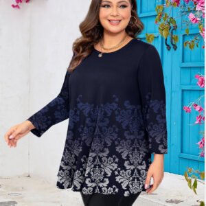 Women’s Tops 3/4 Sleeve Plus Size Tunic Tops to Wear with Leggings Swing Flare T-Shirt Loose Fit Ladies Blouses