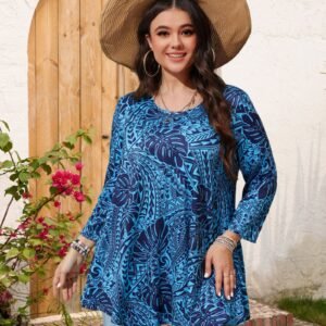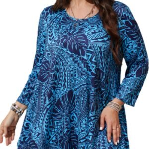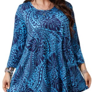 Women’s Tops 3/4 Sleeve Plus Size Tunic Tops to Wear with Leggings Swing Flare T-Shirt Loose Fit Ladies Blouses
