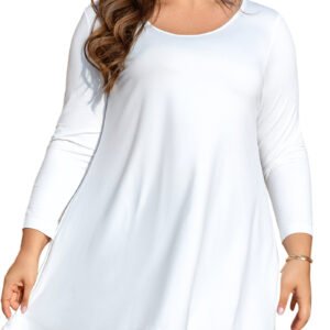 Women’s Tops 3/4 Sleeve Plus Size Tunic Tops to Wear with Leggings Swing Flare T-Shirt Loose Fit Ladies Blouses