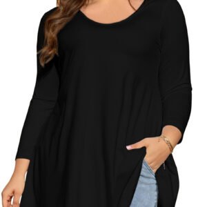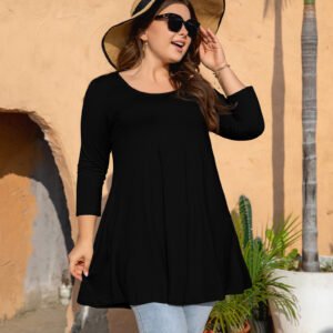 Women’s Tops 3/4 Sleeve Plus Size Tunic Tops to Wear with Leggings Swing Flare T-Shirt Loose Fit Ladies Blouses